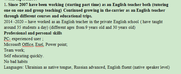 國籍: 烏克蘭 求職意向: 教師