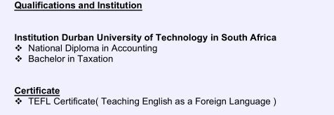 國(guó)籍: 澳大利亞       求職意向: 教師