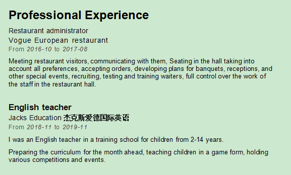 自我介紹,介紹2 年多中國教學(xué)經(jīng)驗(yàn),目前正在找新的工作機(jī)會(huì)