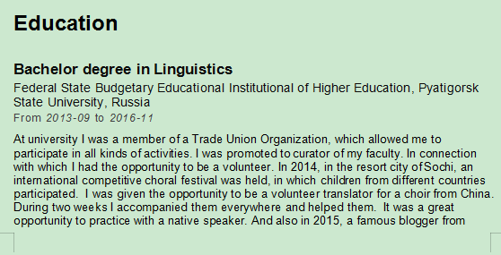 Victoria 維多利亞 +俄羅斯美女+語言專業(yè)本科,企業(yè)管理碩士+自理學(xué)生簽(工簽資料齊全,可以辦理工簽也可以自理工簽)+求職南方任何城市幼兒園最好,培訓(xùn)機(jī)構(gòu)次之+目前在 遼寧錦州 ,七月左右到崗