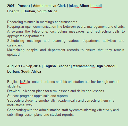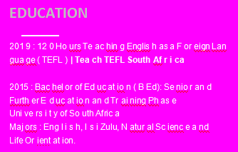 國籍: 南非 求職意向: 教師