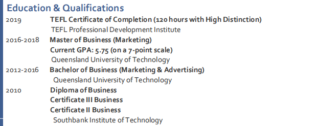 新西蘭,tefl+ 本科+碩士--昆士蘭大學(xué)(The University of Queensland),世界著名頂尖學(xué)府、著名高等科研學(xué)府之一。澳大利亞常春藤聯(lián)盟“八大名?!敝?,可以教授商務(wù)英語(yǔ) 工作簽證轉(zhuǎn)聘、薪資協(xié)商。 |