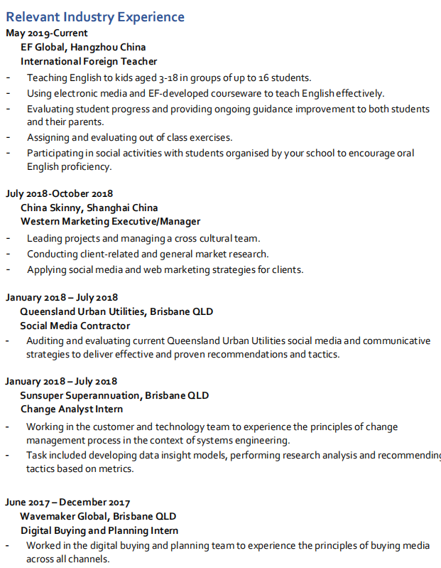 外教簡(jiǎn)歷