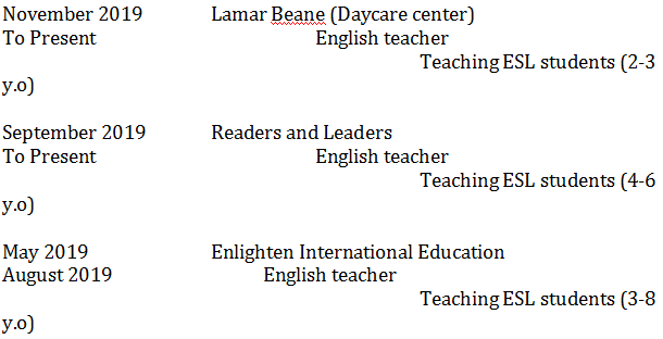 國籍: 未知 求職意向: 教師