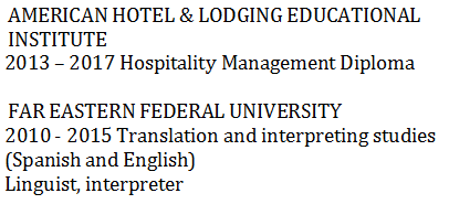 國籍: 俄羅斯 求職意向: 教師