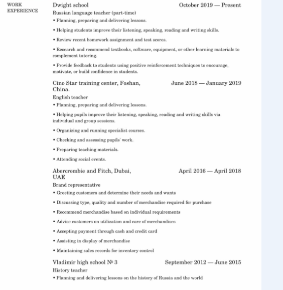 國(guó)籍: 俄羅斯 求職意向: 教師