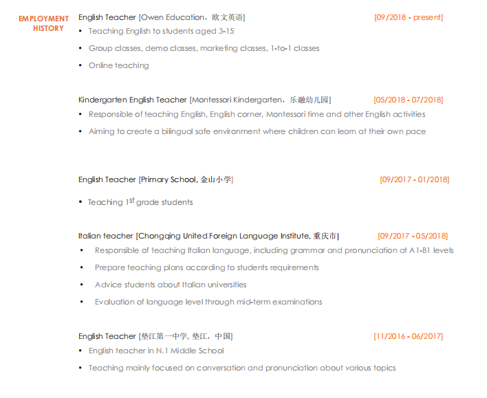 國(guó)籍: 美國(guó) 求職意向: 教師