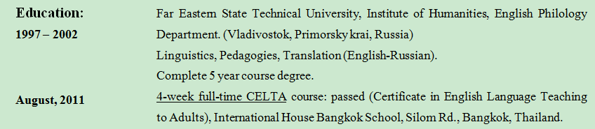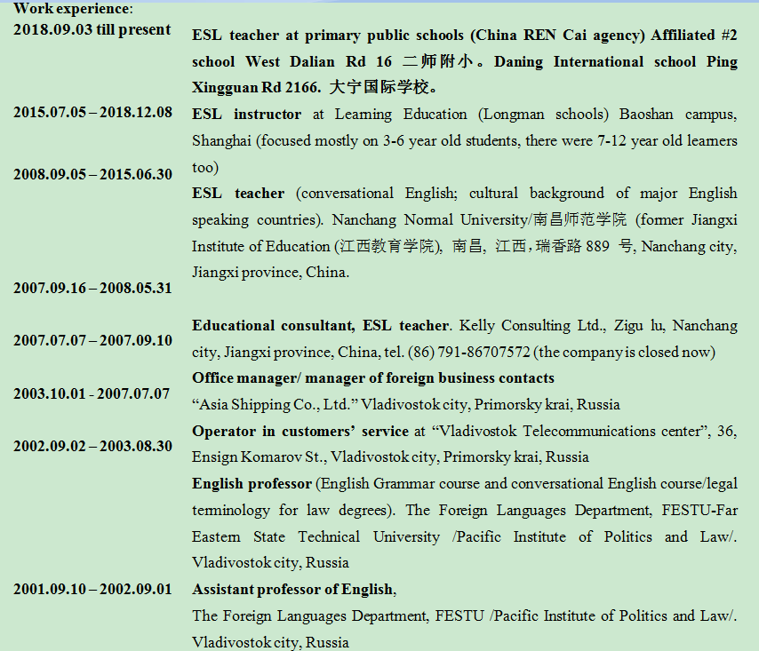 國(guó)籍: 俄羅斯 求職意向: 教師