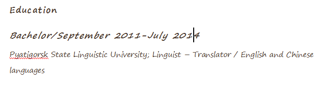 國(guó)籍: 俄羅斯 求職意向: 教師