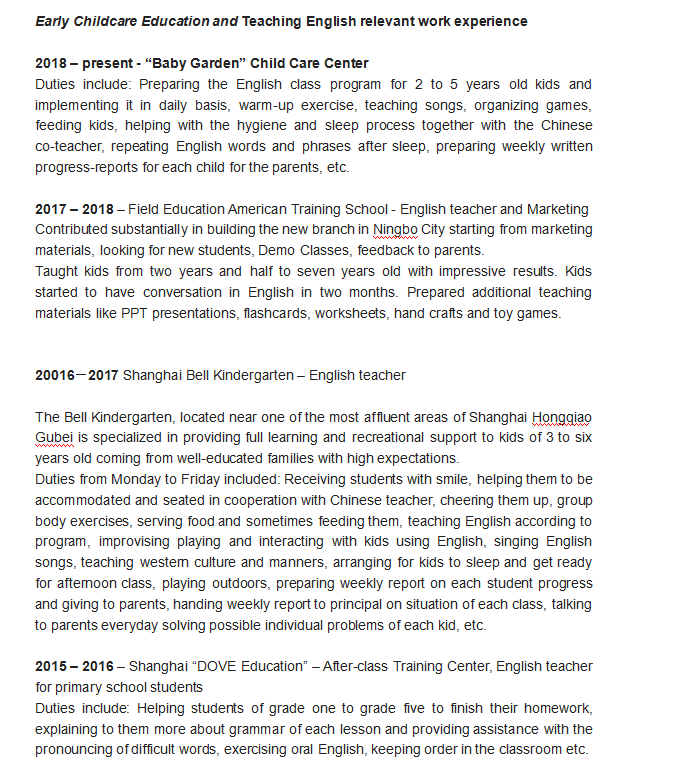 國(guó)籍: 俄羅斯 求職意向: 教師