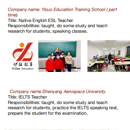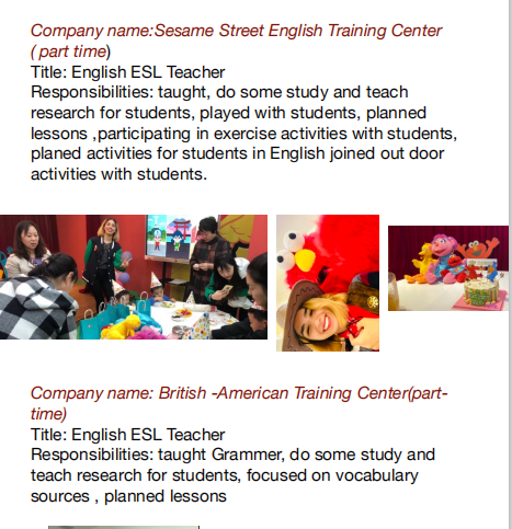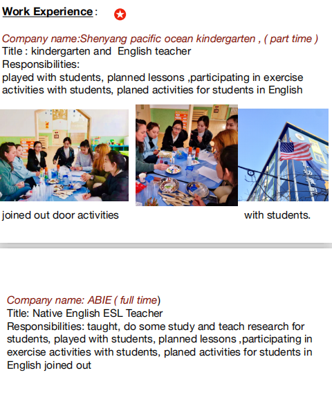 自我介紹,介紹2年多中國教學經驗,從幼兒園到大學都有教學經驗---發(fā)音好,經驗多