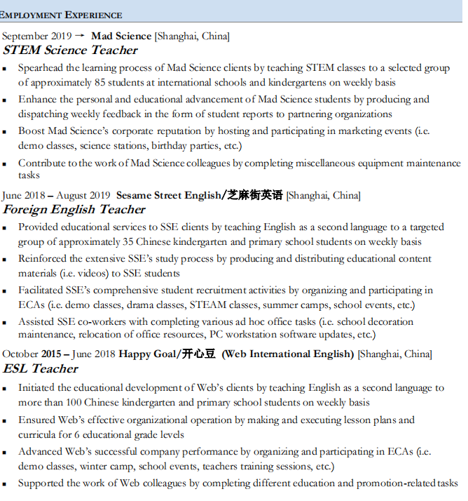 外教簡(jiǎn)歷