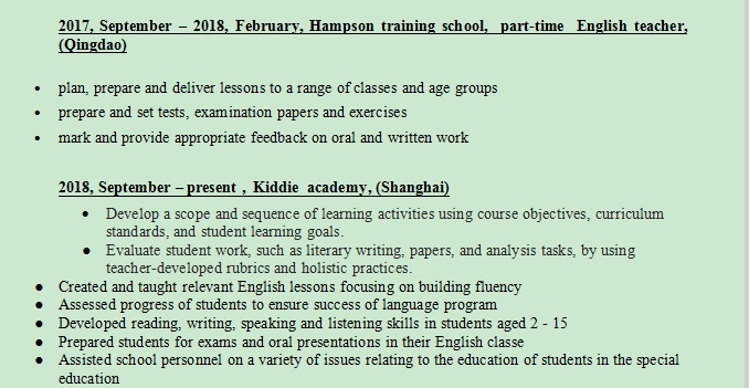 Tina+烏克蘭美女(28歲)+碩士+4年中國教學經(jīng)驗+經(jīng)濟類工簽轉(zhuǎn)聘(11月到期)+求職上海+目前在上海,可盡快到崗~發(fā)音非常好(16-18k) |