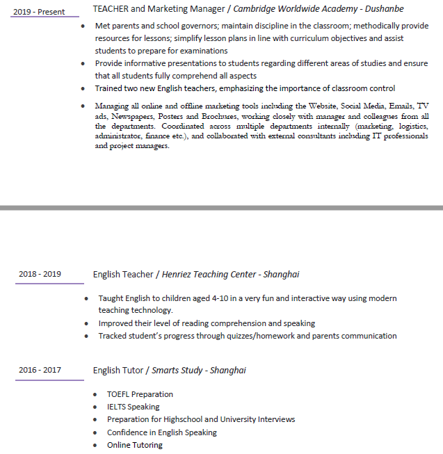 國(guó)籍: 俄羅斯       求職意向: 教師