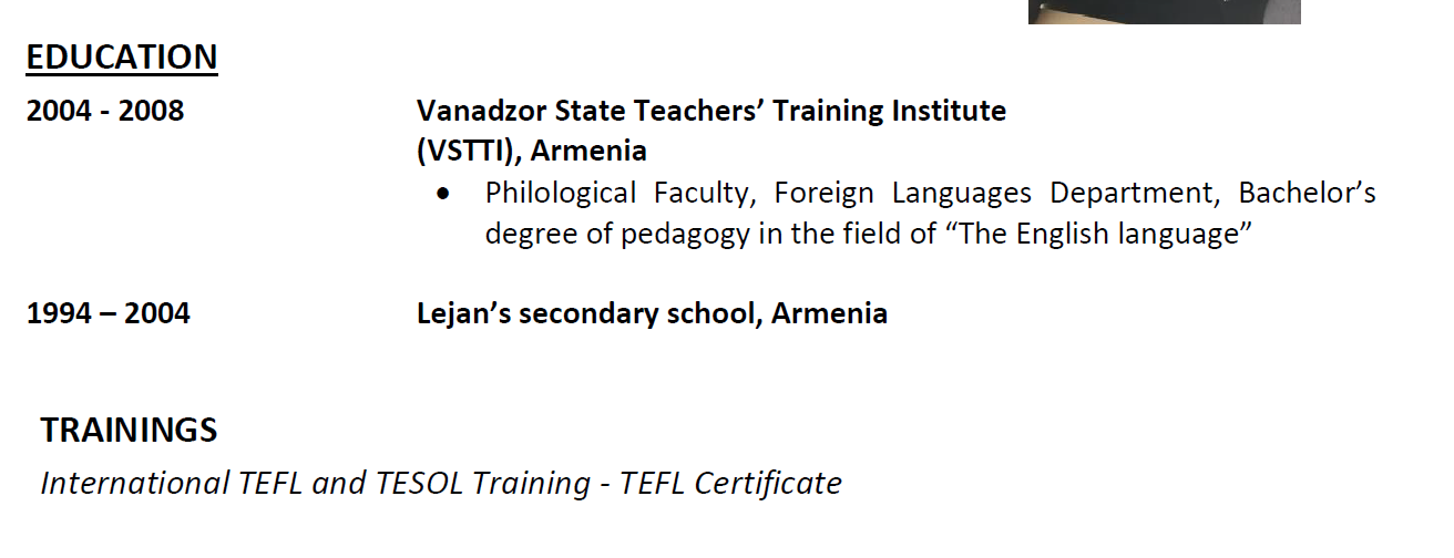 國(guó)籍: 亞美尼亞 求職意向: 教師
