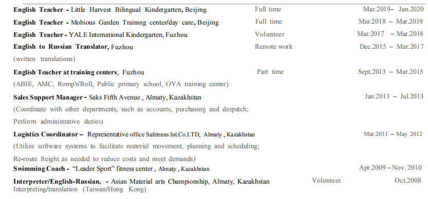 工商管理碩士, 美國學習過,會中文,有教學經驗和TEFL |