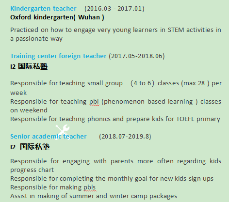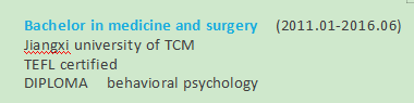 本科醫(yī)學外科專業(yè),有tefl和教學經驗 |