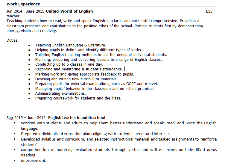 外教簡(jiǎn)歷