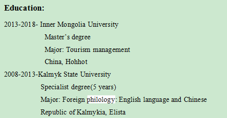 國(guó)籍: 俄羅斯 求職意向: 教師