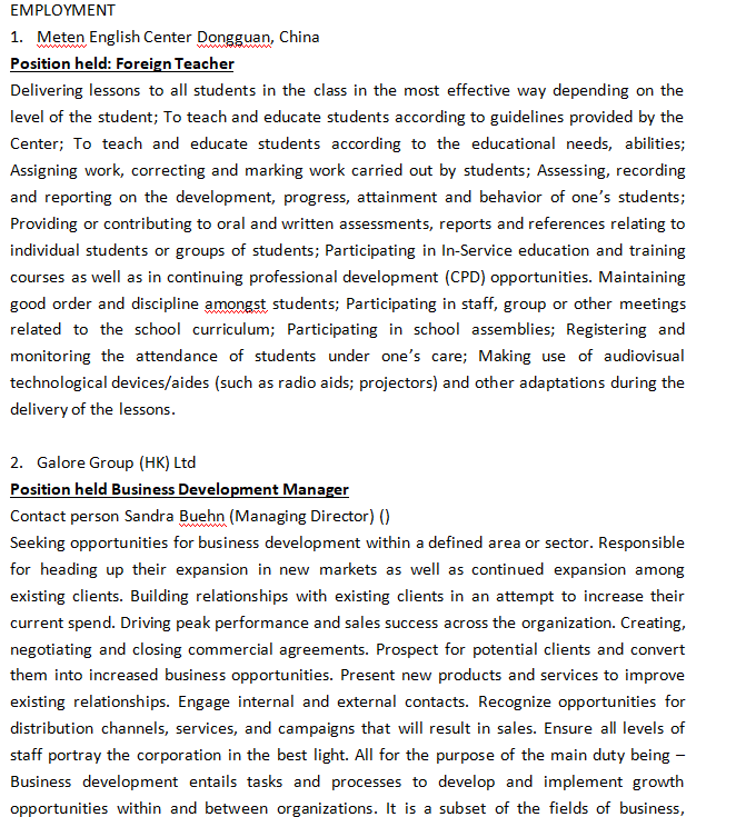 國籍: 德國 求職意向: 教師