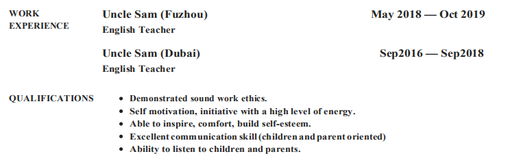 外教有在中國(guó)的教學(xué)經(jīng)驗(yàn) 三年教學(xué)經(jīng)驗(yàn) 目前求職在線職位 |