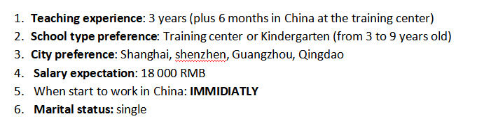 國(guó)籍: 俄羅斯 求職意向: 教師