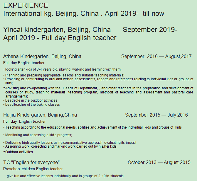 國籍: 俄羅斯 求職意向: 教師