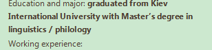 學(xué)歷: 本科 期望薪資: 8000-11000(Yuan/M)