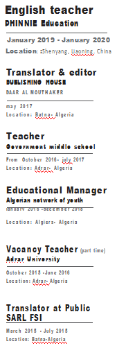 國籍: 其他 求職意向: 教師