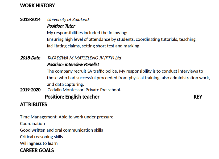 外教簡(jiǎn)歷