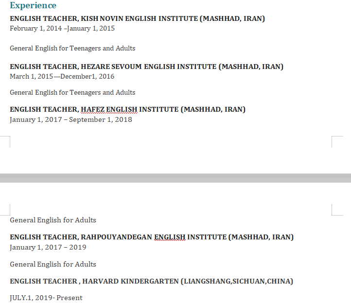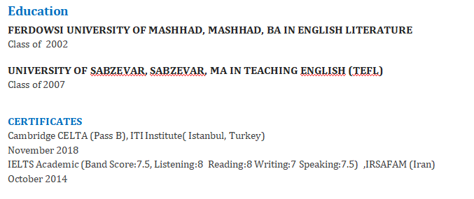 國籍: 亞美尼亞 求職意向: 教師