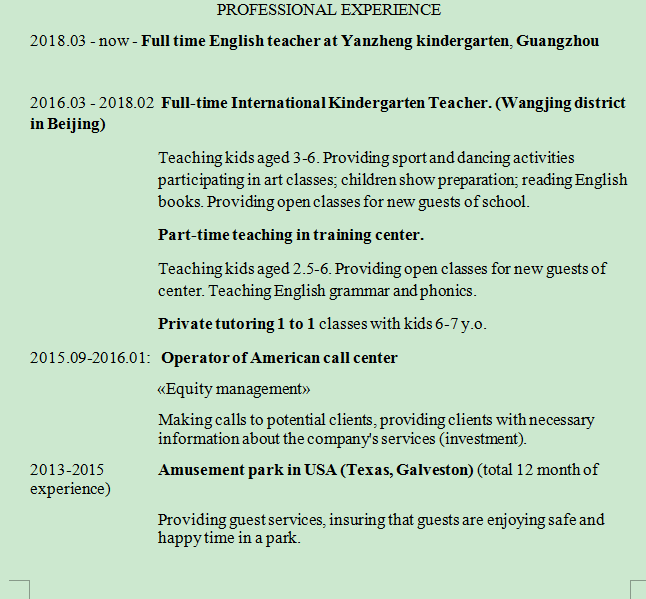 國(guó)籍: 俄羅斯 求職意向: 教師
