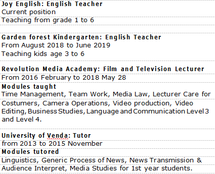 國籍: 其他 求職意向: 教師