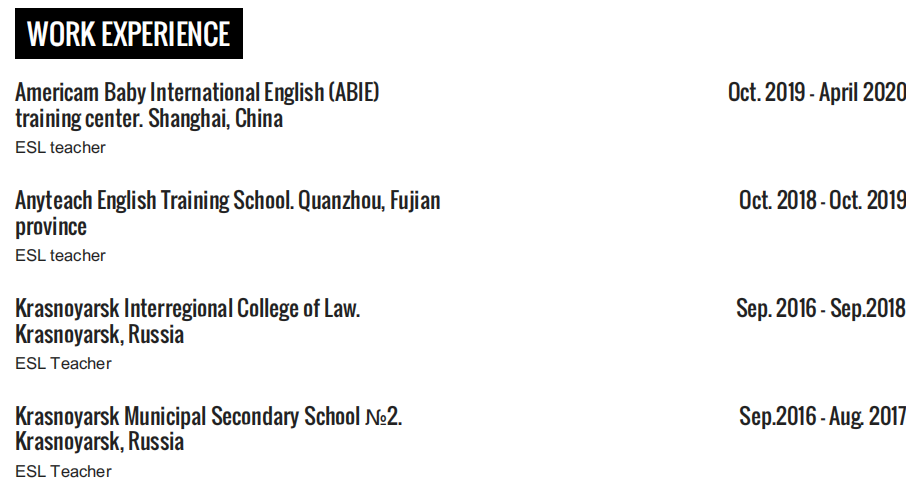 國(guó)籍: 俄羅斯 求職意向: 教師