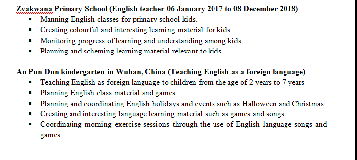 津巴布韋, 在武漢, 工作簽證轉(zhuǎn)聘, 發(fā)音很棒, 本科學(xué)歷, 有tefl , 有經(jīng)驗--在小學(xué)和幼兒園都有經(jīng)驗。 可以盡快轉(zhuǎn)聘。 性價比高的外教。 |
