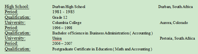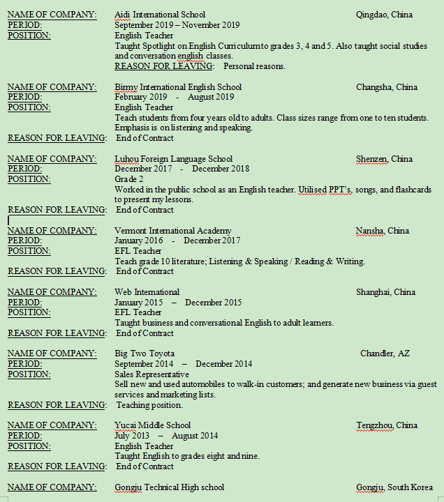 國(guó)籍: 津巴布韋 求職意向: 教師