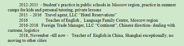 國(guó)籍: 俄羅斯 求職意向: 教師