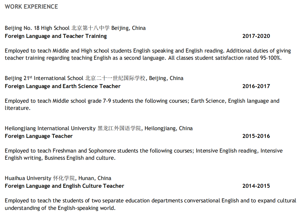 英國 英國林肯大學(xué)歷史專業(yè), 有豐富經(jīng)驗, 在北京18中, 黑龍江外國語,大學(xué)等 以及多家公立學(xué)校都有經(jīng)驗。 |