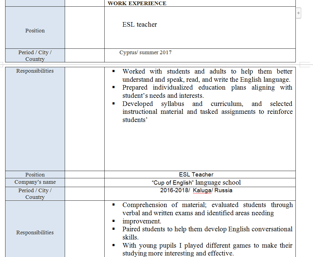 國(guó)籍: 俄羅斯 求職意向: 教師