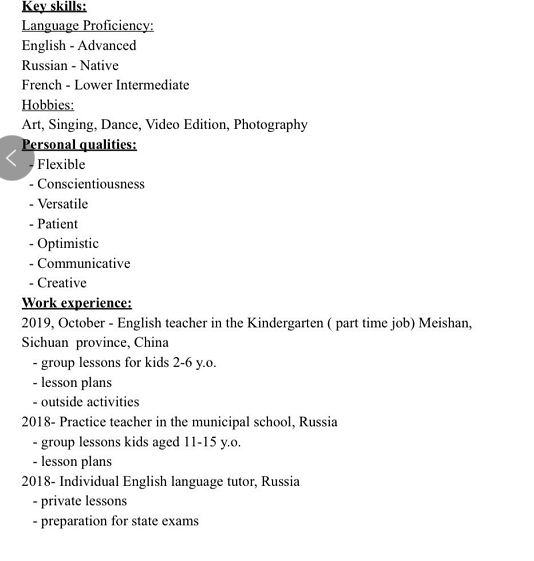 俄羅斯, 本科-語言專業(yè), 有經(jīng)驗(yàn), 求職不限制。 |