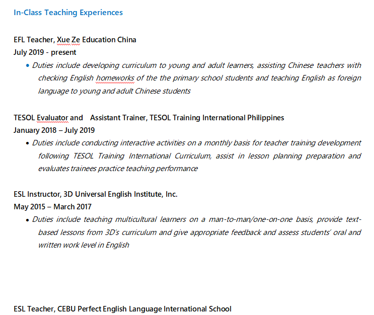國籍: 其他 求職意向: 教師