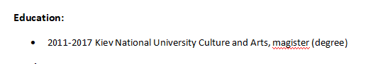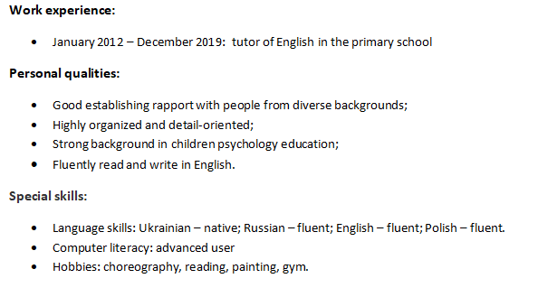 烏克蘭, 大學文科學位。 5年經驗, 求職不限制, 薪資協(xié)商。 |