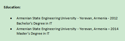 國籍: 亞美尼亞 求職意向: 教師