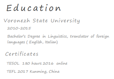 國籍: 其他 求職意向: 教師