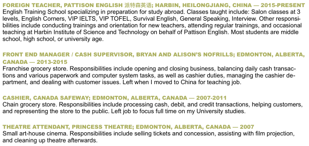 學歷: 本科 期望薪資: 3000-4000(Yuan/M)
