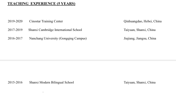 有本科有tefl ,工簽轉(zhuǎn)聘, 求職地不限制,在中國有多年教學(xué)經(jīng)驗(yàn) |