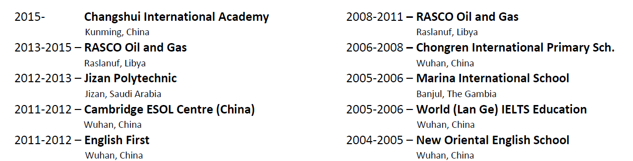 外教有本科 有tefl , 在云南的一個國際學校工作 |