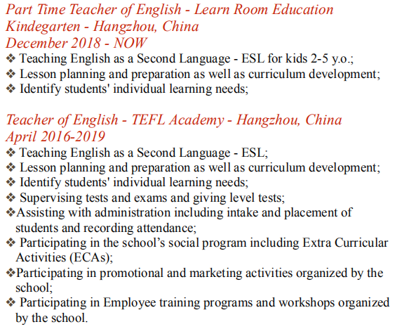 國(guó)籍: 伊朗 求職意向: 教師