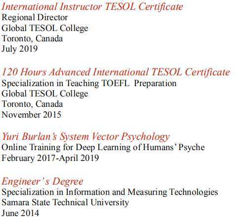 國(guó)籍: 亞美尼亞 求職意向: 教師
