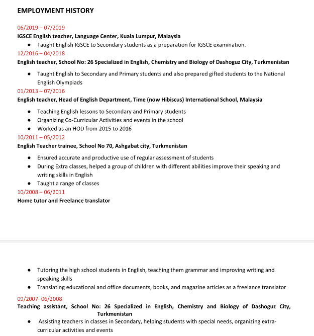 外教簡(jiǎn)歷